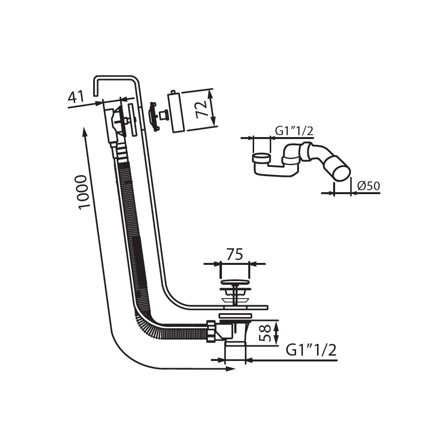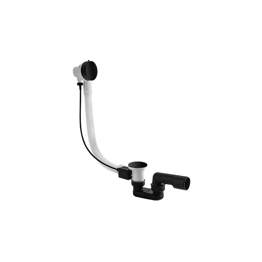 Przelew wannowy z syfonem do odpływu 40/50 mm. Rura przelewowa o długości 100 cm. Z korkiem odpływowym i korkiem przelewu wody wykonanym z mosiądzu w kolorze czarny mat.