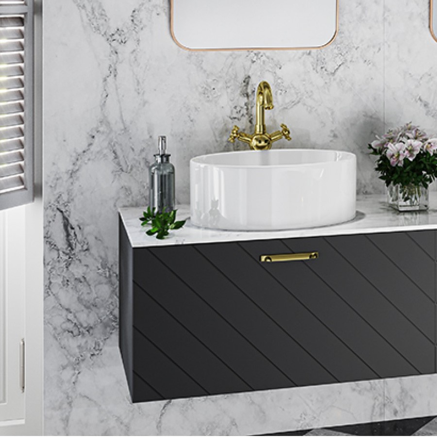 Opis produktu Besco Floo szafka podumywalkowa 80 cm czarna uchwyt złoty lewa SUF-854-CZL