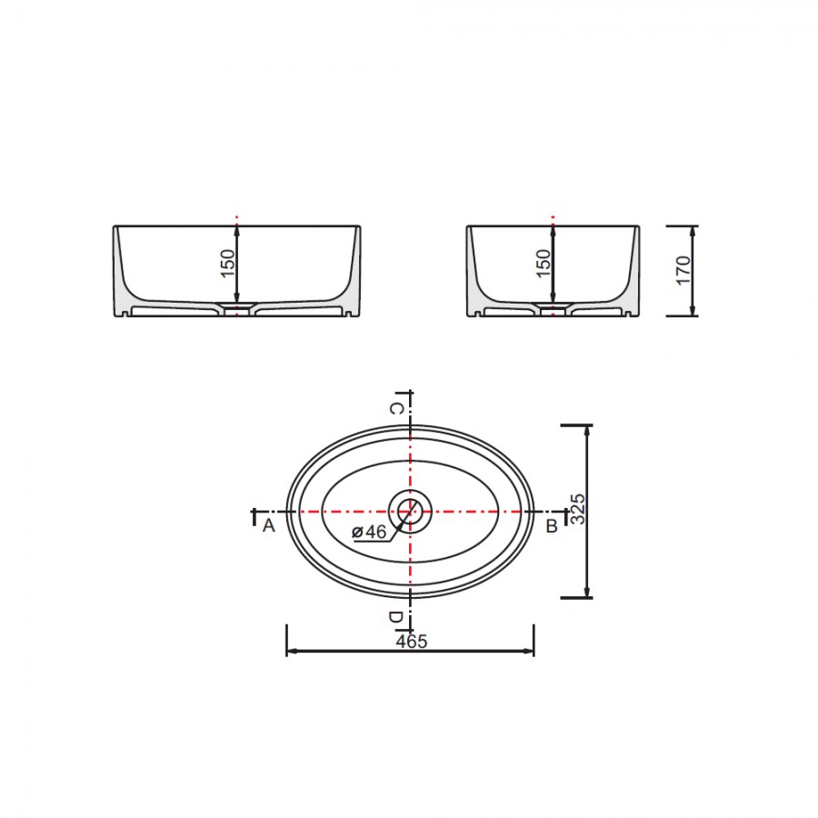 Nablatowa umywalka 32x46 cm, wysokość 17 cm, wykonana z materiału Mineral DuraBe, bez przelewu oraz otworu na baterię. W komplecie z korkiem klik-klak oraz syfonem.Besco Uniqa umywalka nablatowa 32x46 cm czarno-biała UMD-U-NBW