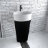 Wolnostojąca umywalka 32x46 cm, wysokość 84 cm. Umywalka wykonana z materiału Mineral DuraBe. Umywalka bez przelewu oraz otworu na baterię. W komplecie z korkiem klik-klak oraz syfonem.Besco Uniqa umywalka wolnostojąca 32x46 cm czarno-biała UMD-U-WBW