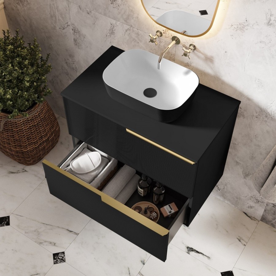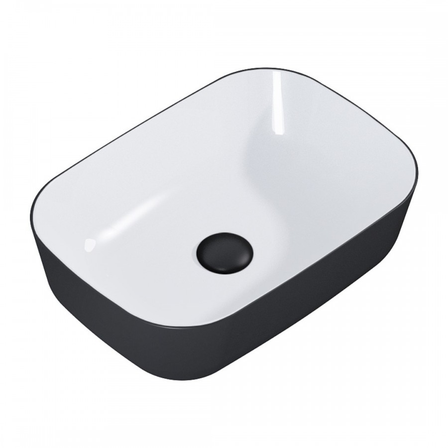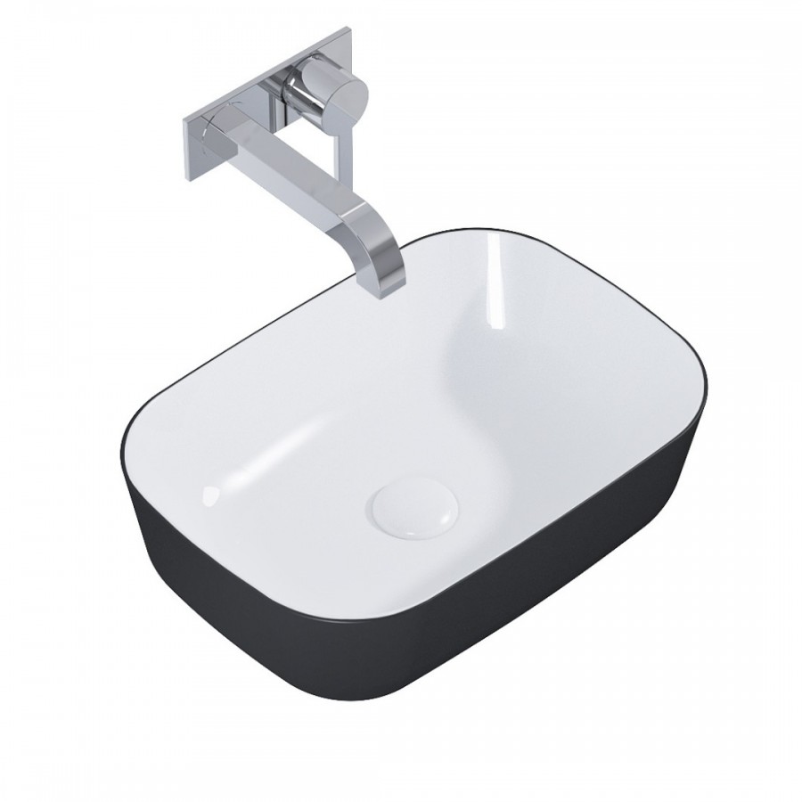 Opis produktu Elita Meble Reni umywalka nablatowa 45,5x32,5 cm prostokątna biały połysk/czarny mat RE040460896110
