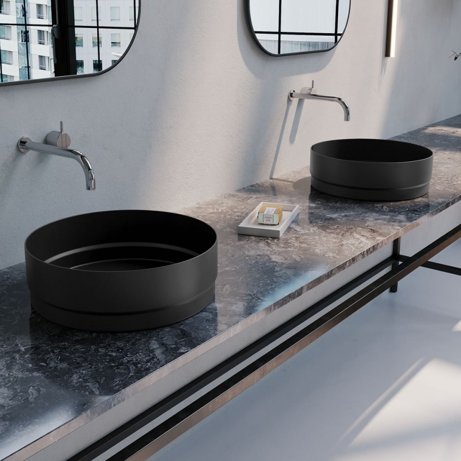 Opis produktu Kaldewei Nueva umywalka nablatowa okrągła 38 cm stalowa czarny błyszczący