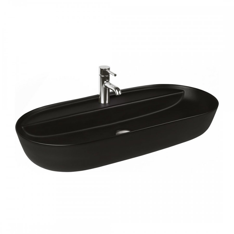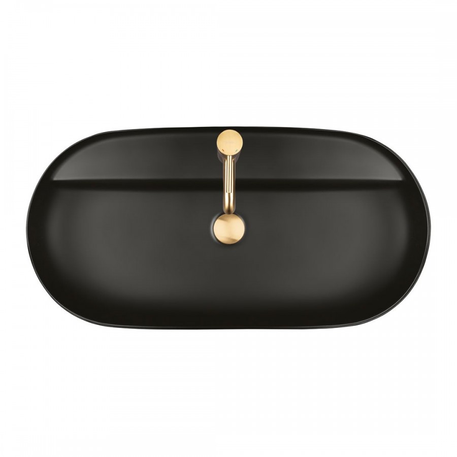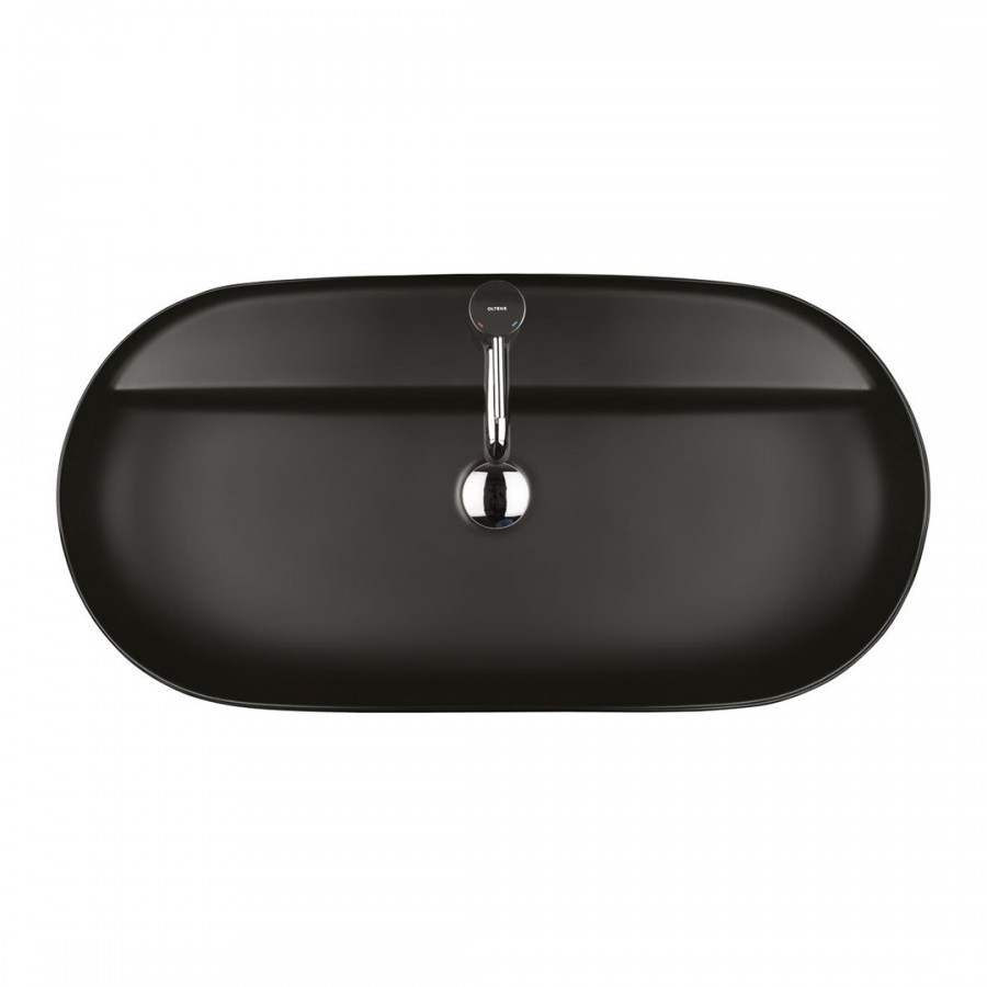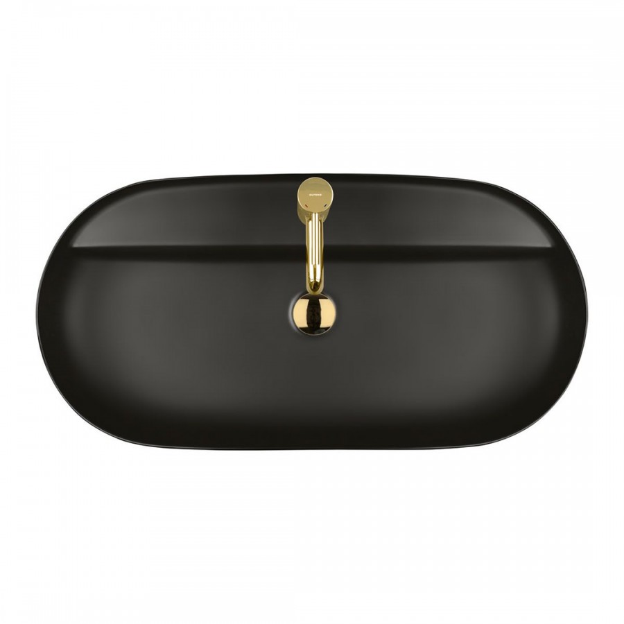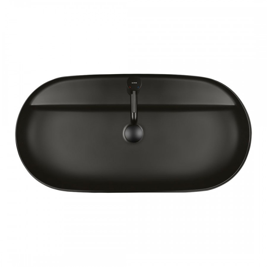 Opis produktu Oltens Hamnes Thin umywalka 80x40 cm nablatowa owalna z powłoką SmartClean czarny mat 41815300