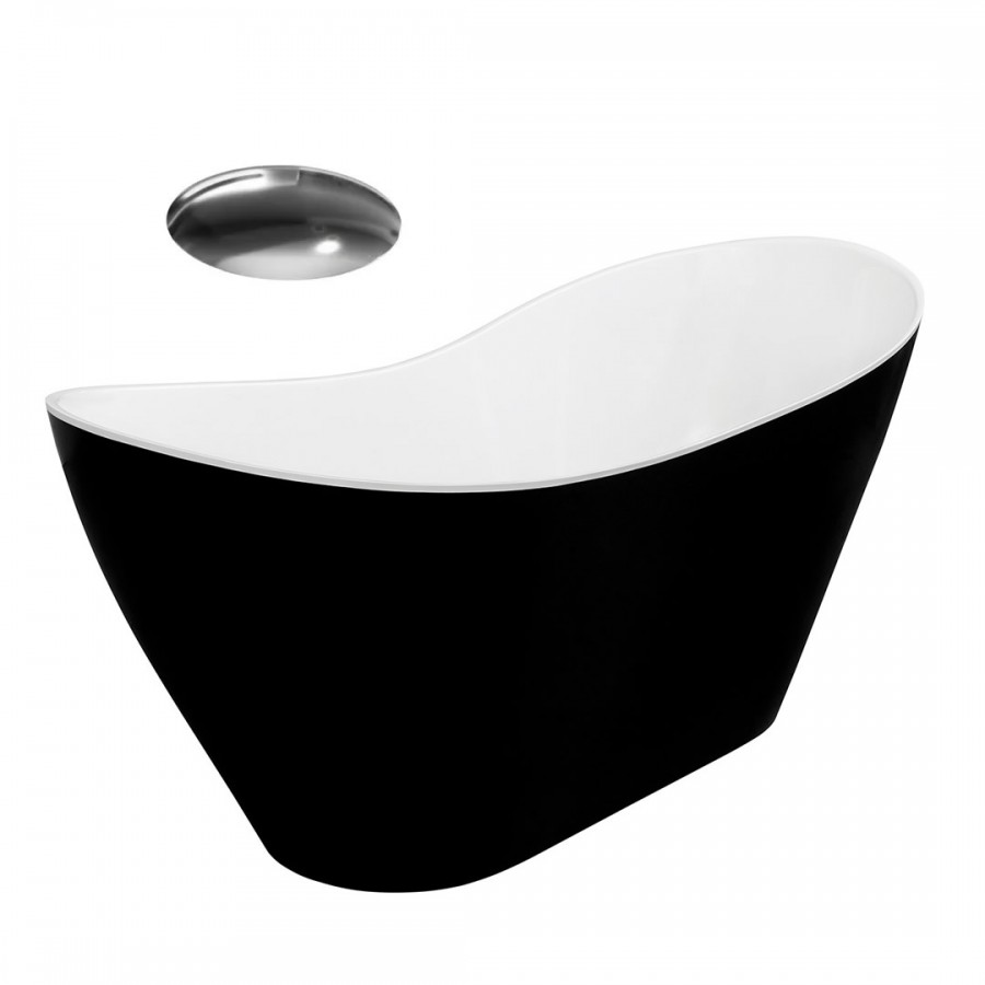 Opis produktu Besco Viya wanna wolnostojąca 160x70 cm czarna/biała bez przelewu korek chrom WMD-160-VWC