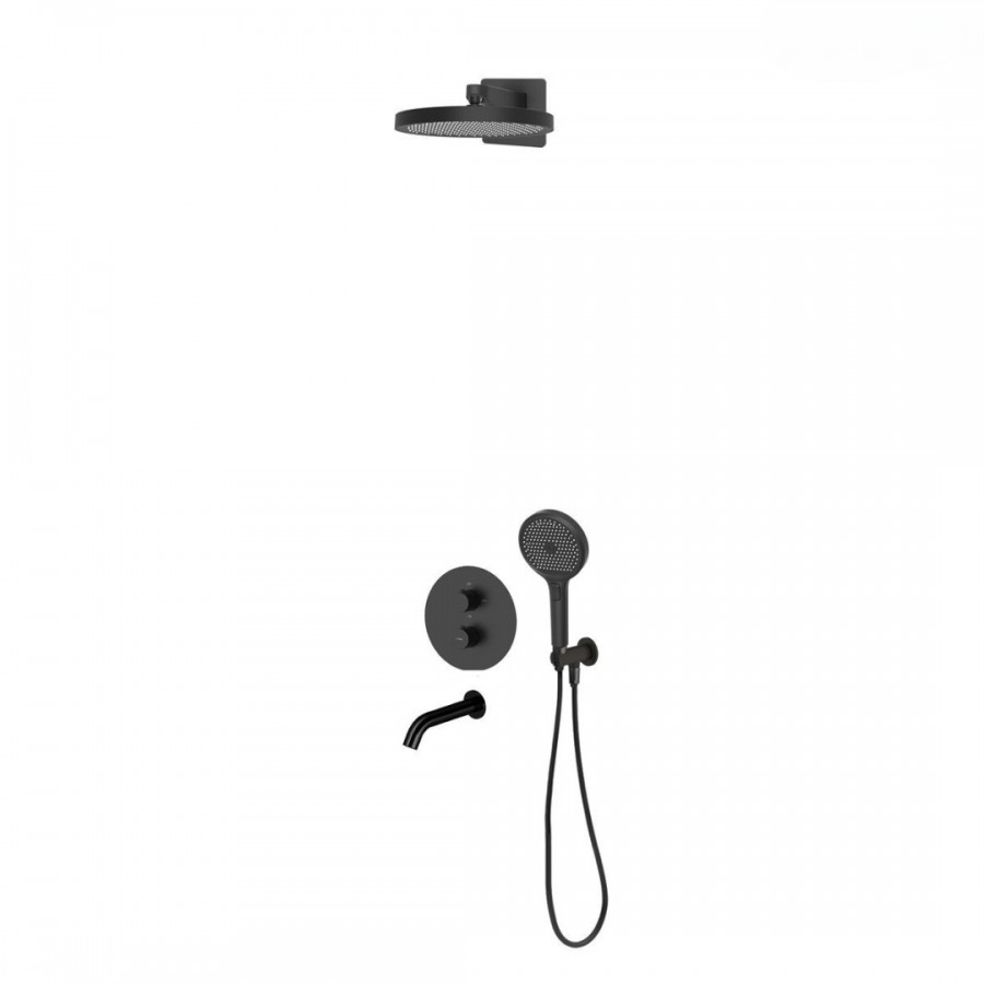 Opis produktu Oltens Katla zestaw wannowo-prysznicowy podtynkowy termostatyczny deszczownica 32 cm czarny mat 36067300
