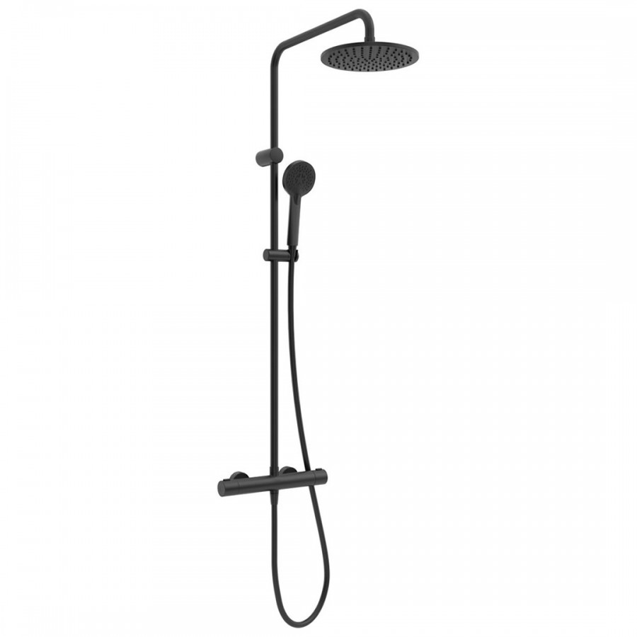 Opis produktu Oltens Atran zestaw prysznicowy termostatyczny z deszczownicą okrągłą czarny mat 36500300