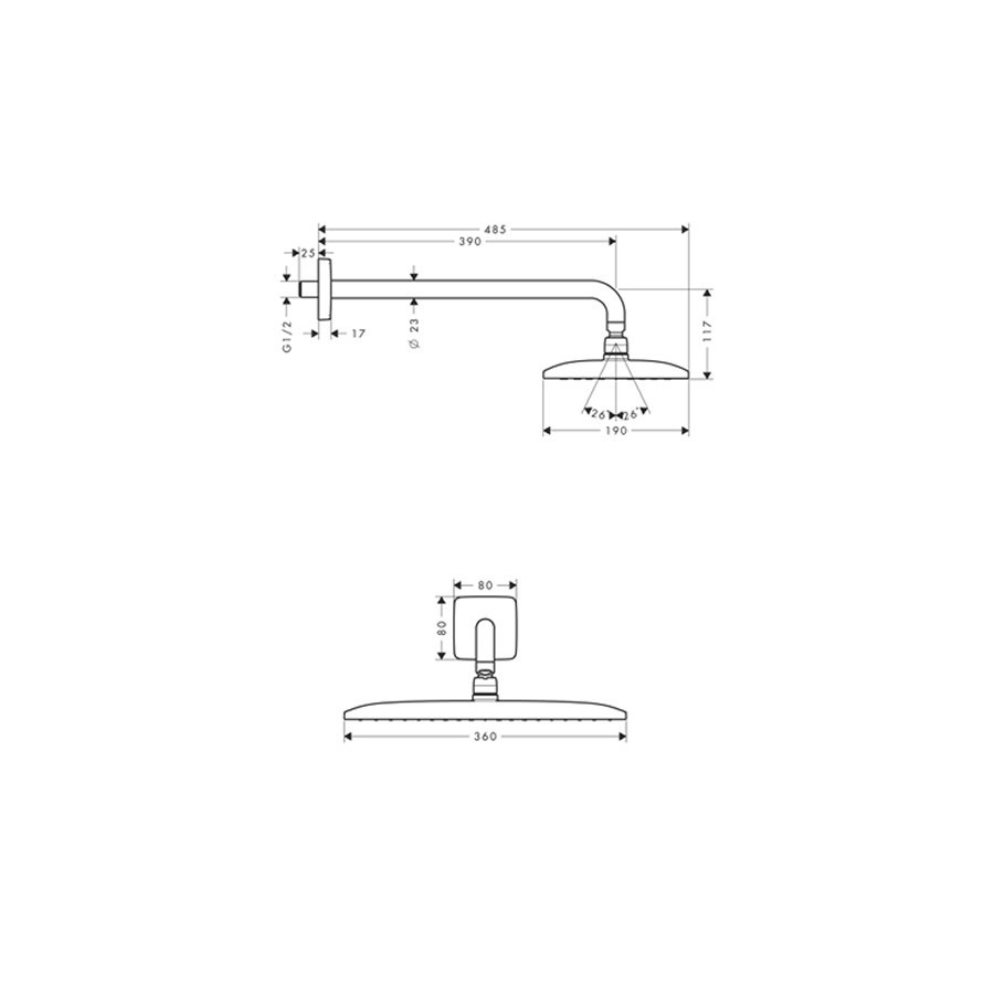 Opis produktu Hansgrohe Raindance E deszczownica prostokątna 36x19 cm z ramieniem ściennym chrom 27376000