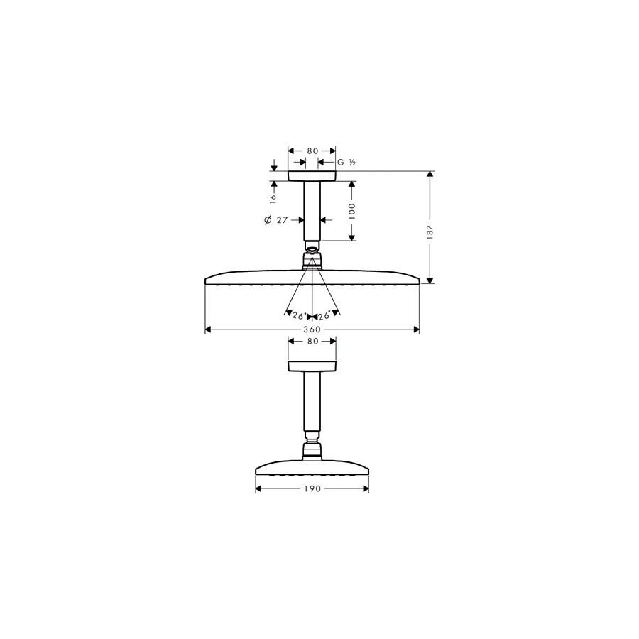 Opis produktu Hansgrohe Raindance E deszczownica prostokątna 36x19 cm z ramieniem sufitowym chrom 27381000