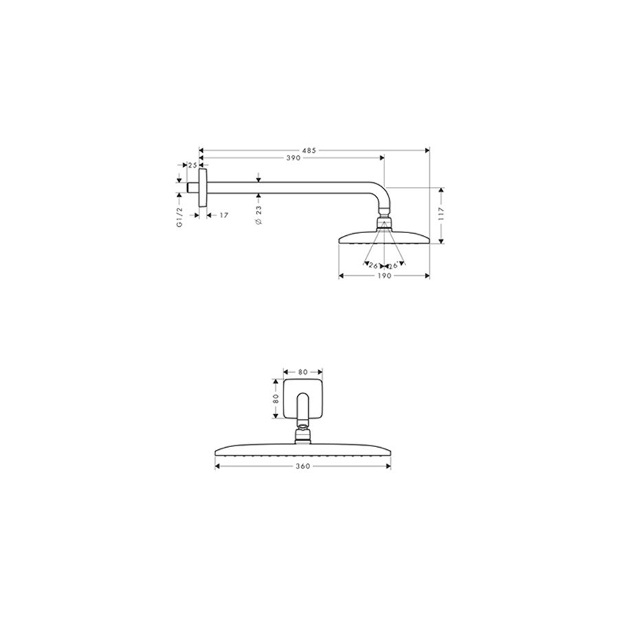 Opis produktu Hansgrohe Raindance EcoSmart deszczownica prostokątna 36x19 cm z ramieniem ściennym chrom 26605000