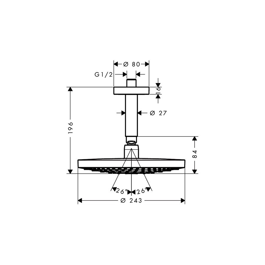 Opis produktu Hansgrohe Raindance Select S deszczownica okrągła 24 cm z ramieniem sufitowym chrom/biały 26467400