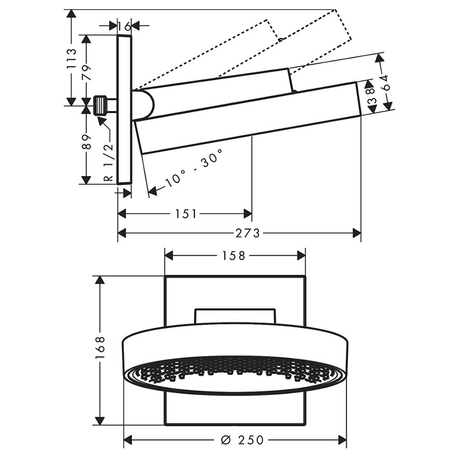 Opis produktu Hansgrohe Rainfinity deszczownica okrągła 25 cm z ramieniem ściennym chrom 26226000