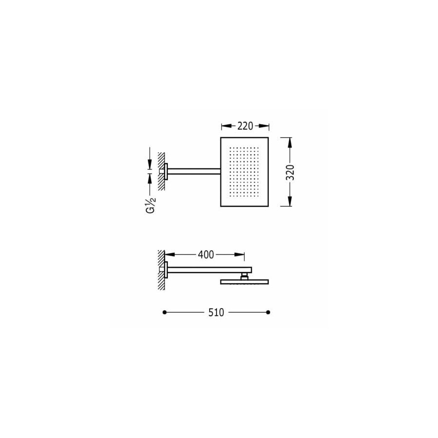 Opis produktu Tres deszczownica prostokątna 32x22 cm z ramieniem ściennym 29953202
