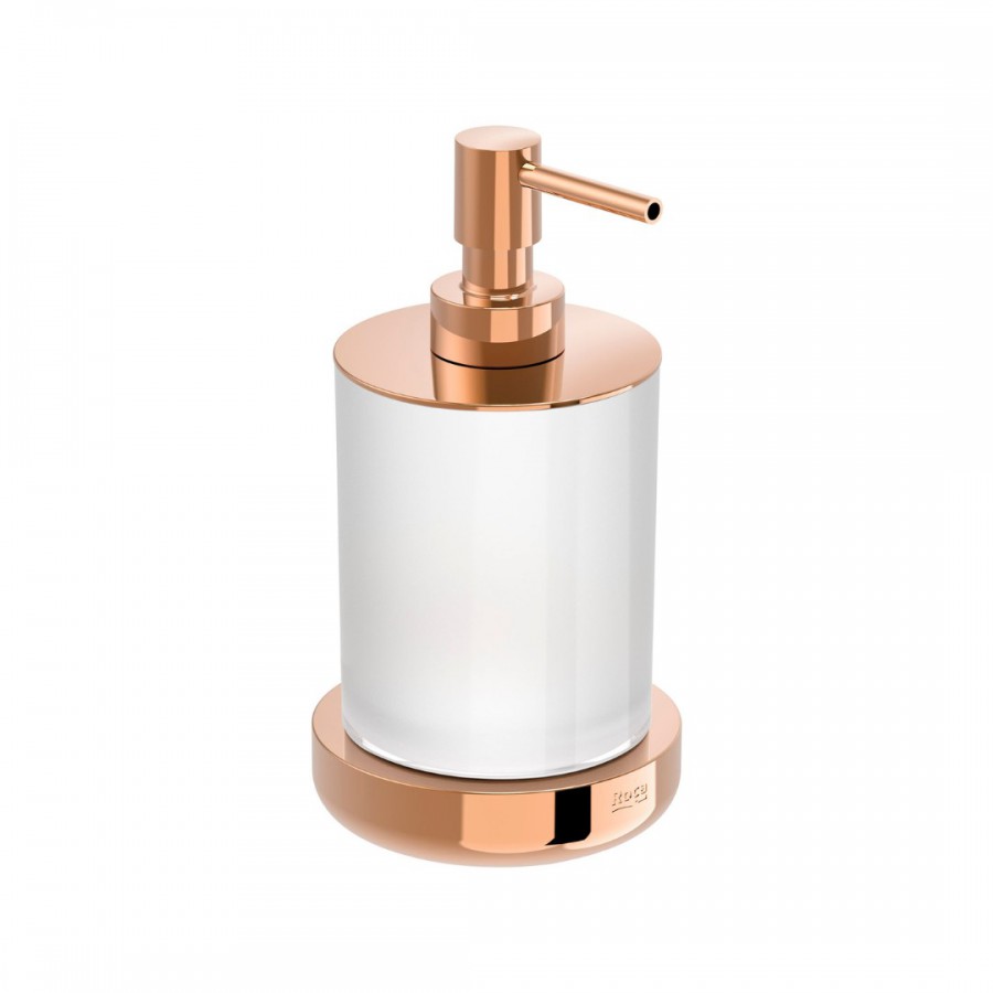 Opis produktu Roca Tempo dozownik na mydło stojący szkło/złoto różowe A817026RG0
