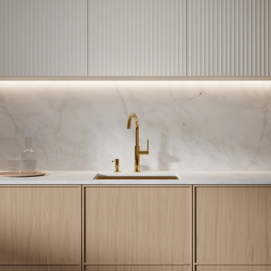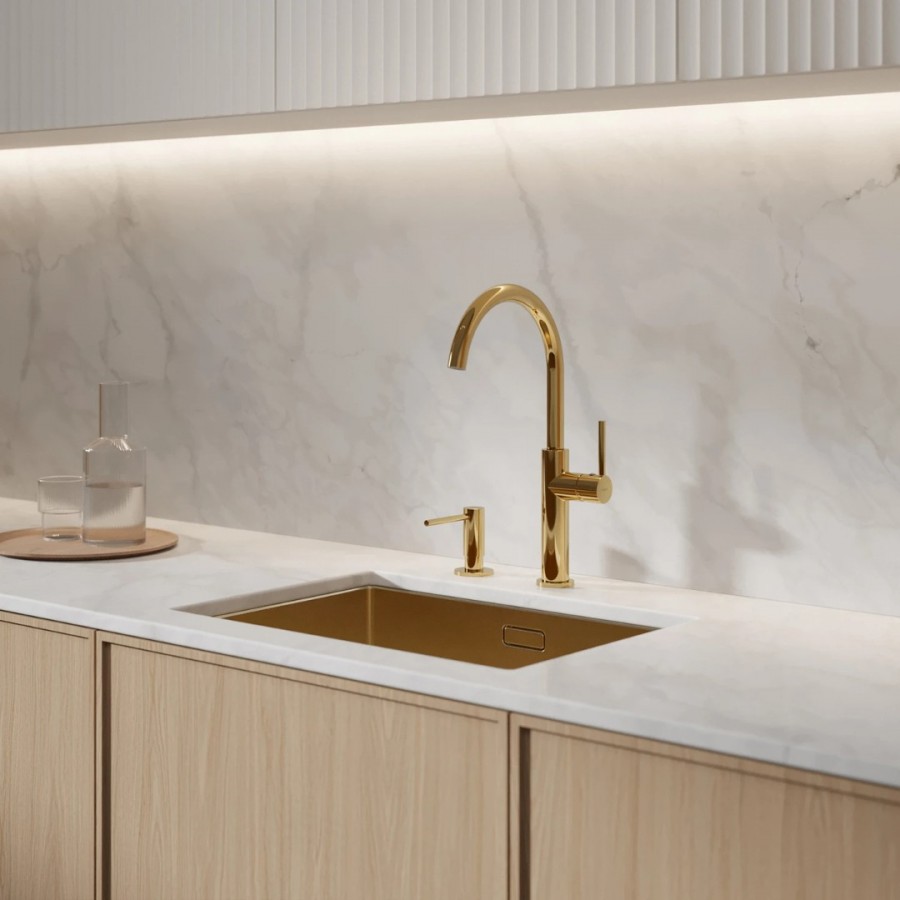 Złoto jest szlachetnym wykończeniem o eleganckim, jasnym odcieniu i idealnie gładkiej, lśniącej powierzchni. Powłoka została wykonana w zaawansowanej technologii PVD.