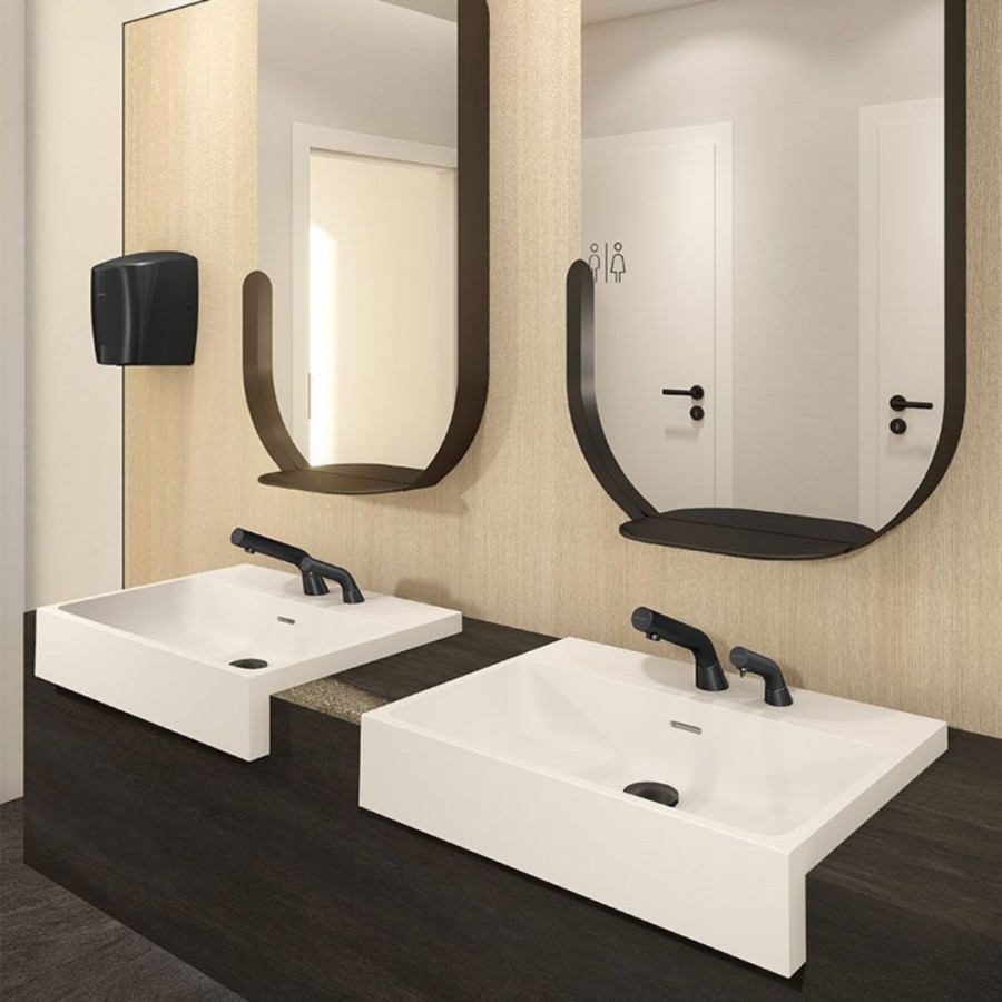 Opis produktu Delabie Binoptic dozownik elektroniczny na mydło stojący czarny mat 512521BK