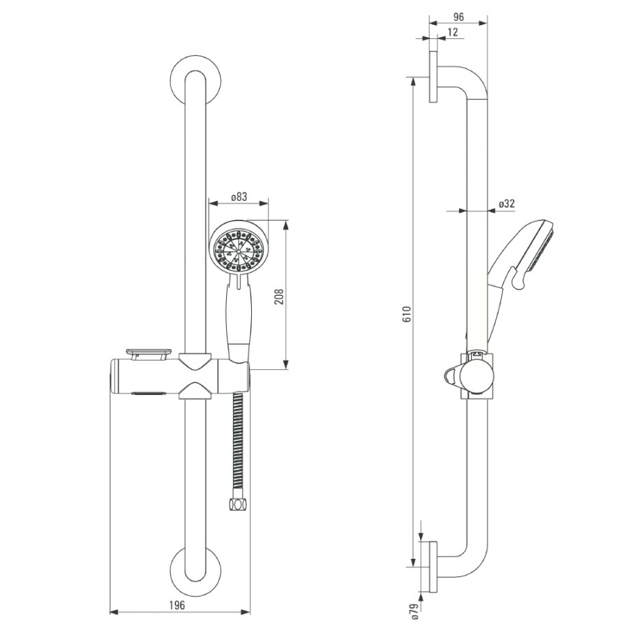 Zestaw natryskowy składający się z drążka stalowego pełniącego funkcję uchwytu, słuchawki 3-funkcyjnej o średnicy 85 mm z wygodną nakładką, na której nie ślizgają się ręce oraz węża stalowego podwójnie plecionego 150 cm.Deante Vital zestaw natryskowy chrom NIV 051K