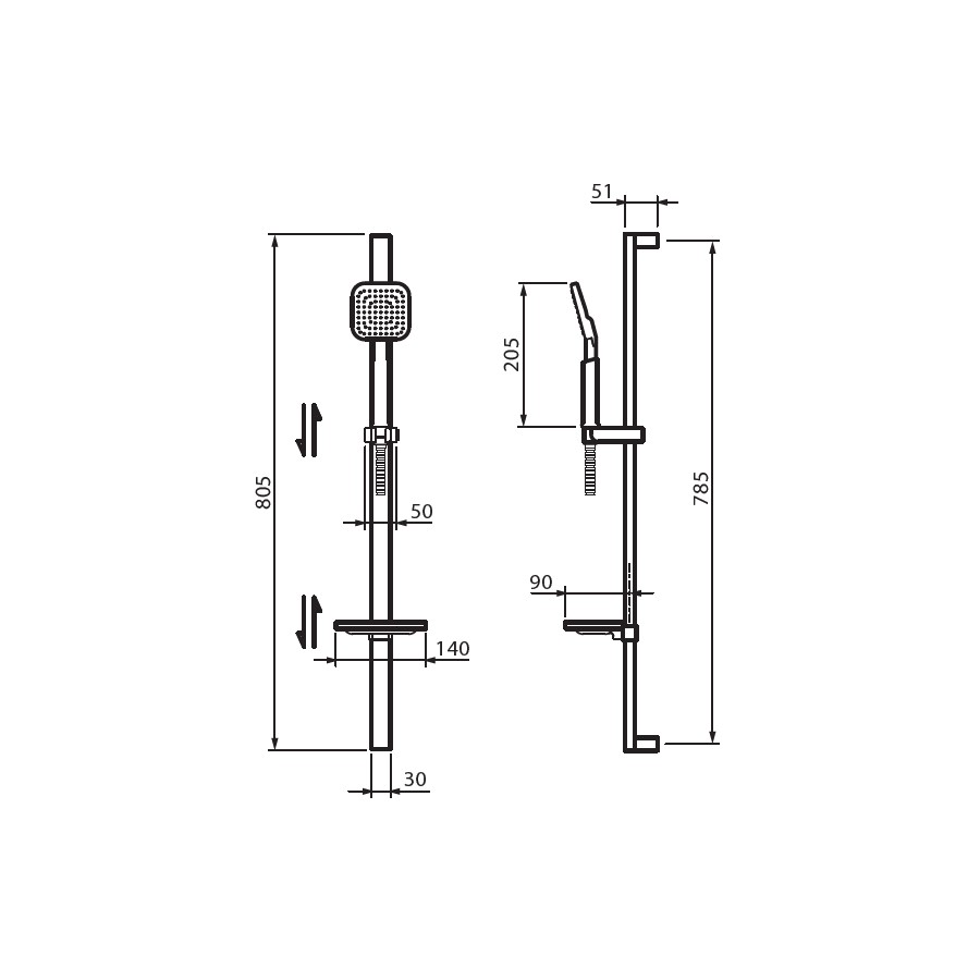 Wąż prysznicowy, Słuchawka prysznicowa, Drążek prysznicowy, Mydelniczka