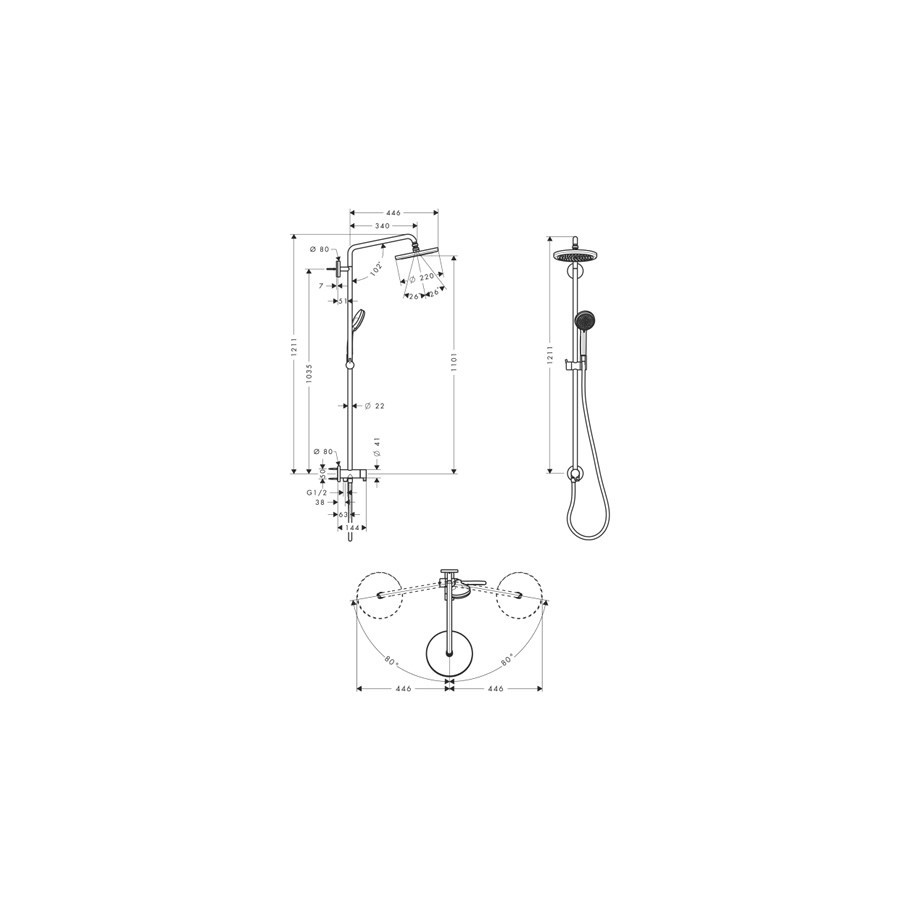 Opis produktu Hansgrohe Croma 220 Reno komplet prysznicowy chrom 27224000