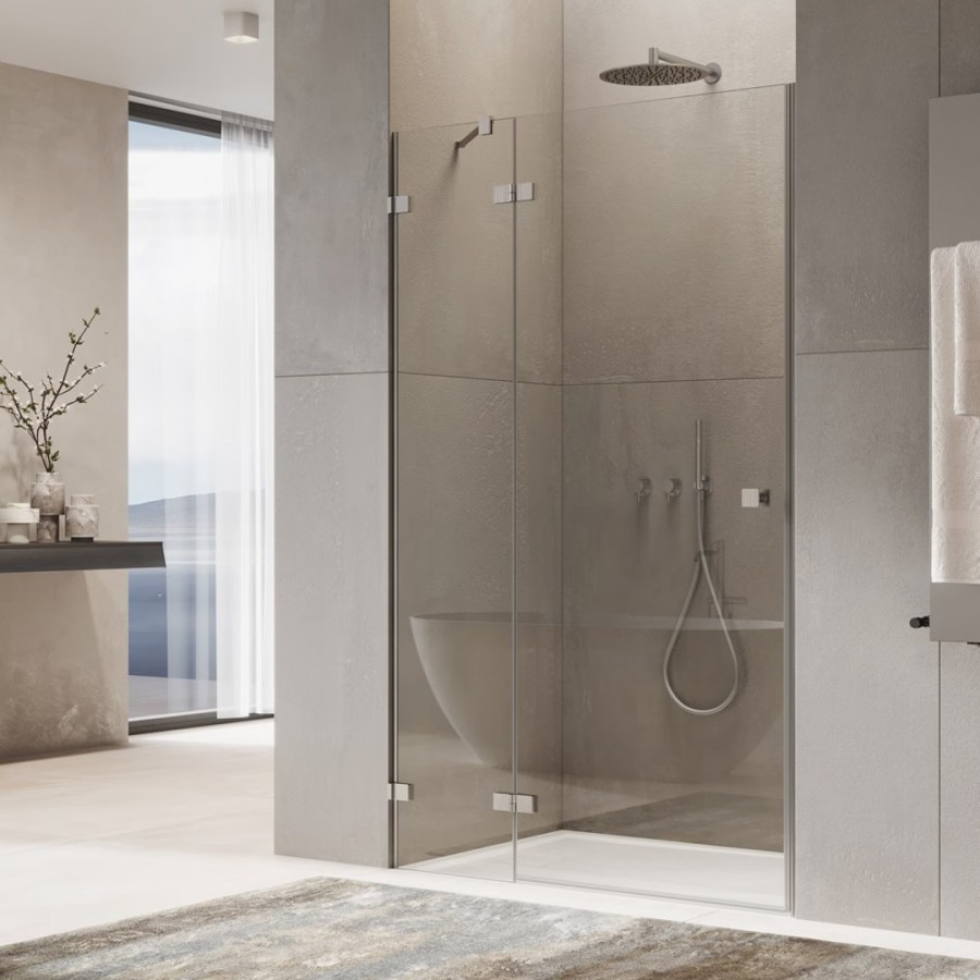 Dane techniczne :- rodzaj produktu : drzwi prysznicowe jednoczęściowe ze ścianką stałą w linii