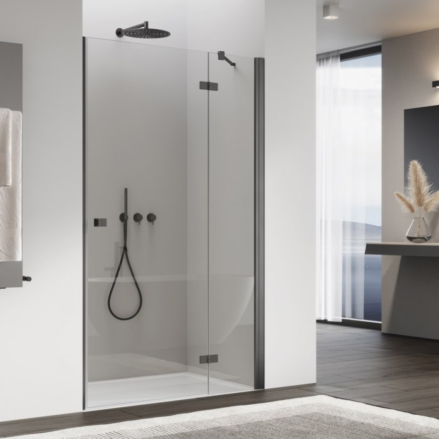 Dane techniczne :- rodzaj produktu : drzwi prysznicowe jednoczęściowe ze ścianką stałą w linii