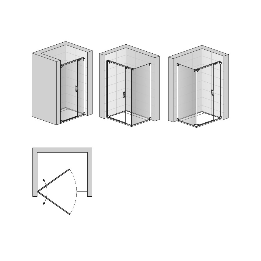 Dane techniczne :- rodzaj produktu : drzwi prysznicowe jednoczęściowe ze ścianką stałą w linii