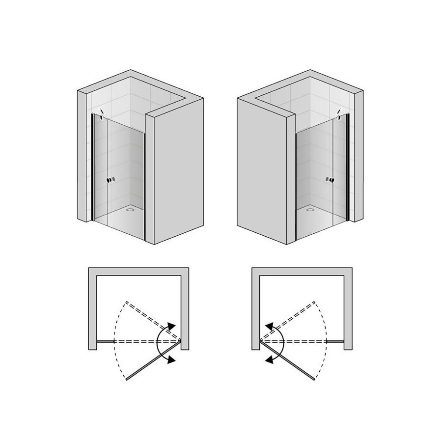 Dane techniczne :- rodzaj produktu : drzwi prysznicowe jednoczęściowe ze ścianką stałą w linii - ścianka stała od strony uchwytu