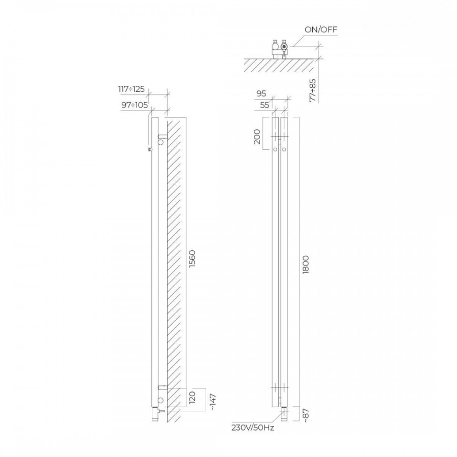 Opis produktu Oltens Stang (e) grzejnik łazienkowy 180x9,5 cm elektryczny miedź szczotkowana 55110610