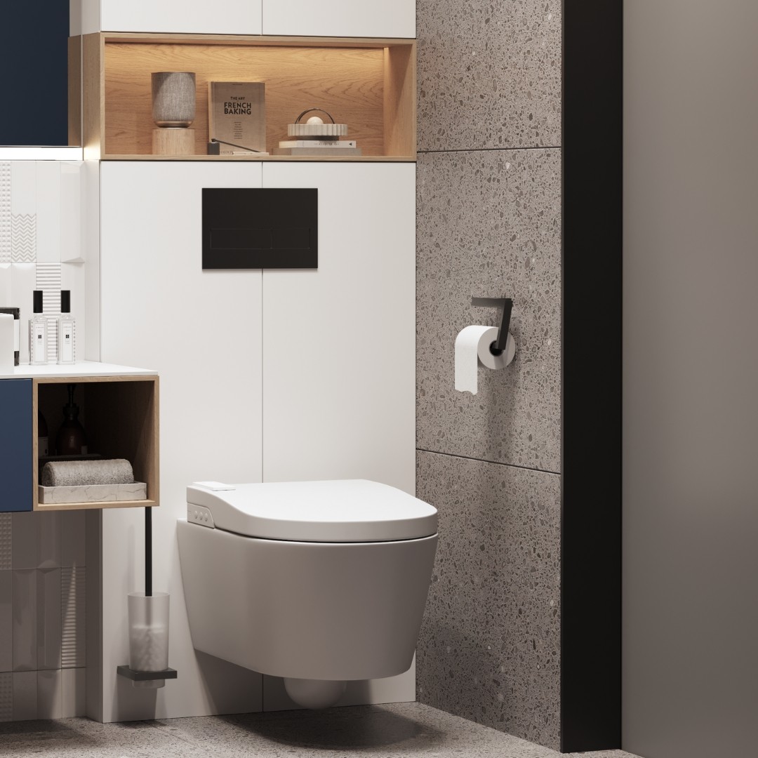 Roca przycisk spłukujący PL7 czarny mat A890188206 280,00 zł Do koszyka Toaleta myjąca w łazience, projekt Linia Projektowanie - zobacz więcej