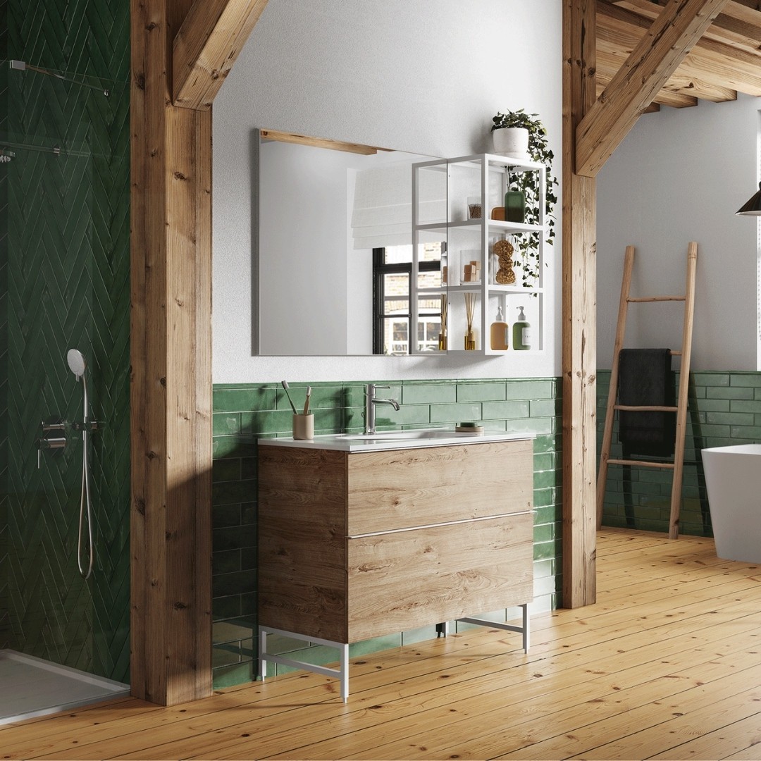 W pomieszczeniu w tym stylu świetnie sprawdzą się zarówno meble postarzane, jak i stylizowane. W łazience można zamontować także drewnianą półeczkę na różne drobiazgi, np. kosze na kosmetyki. Jeśli we wnętrzu są sprzęty, to warto je ukryć w zabudowie.