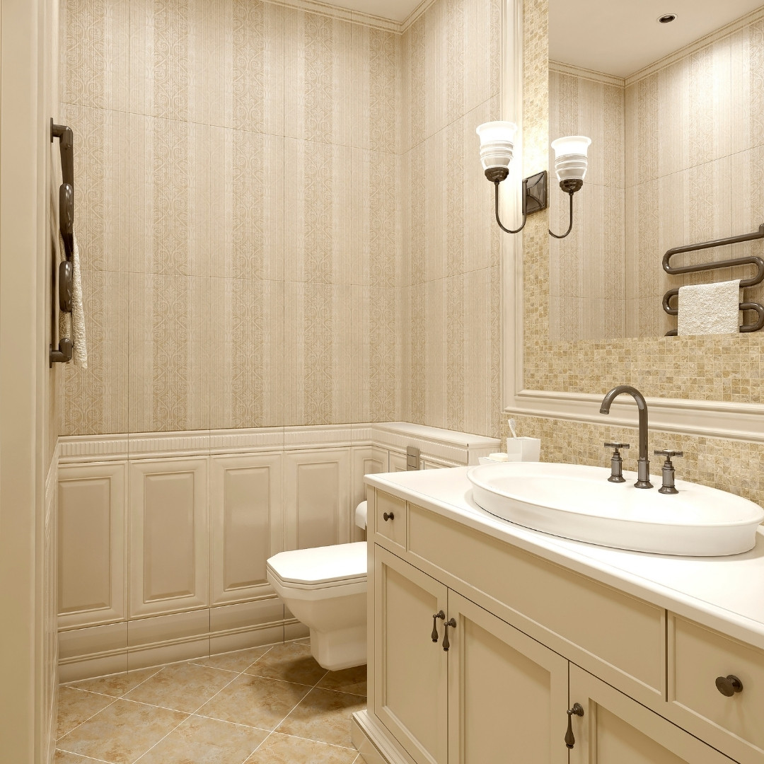 W łazience w tym stylu nie może zabraknąć greckiego, geometrycznego wzoru, który pojawia się na płytkach, ręcznikach, czy porcelanowych dodatkach. W antycznej stylistyce dominuje naturalny kamień. W pomieszczeniu kąpielowym świetnie sprawdzą się płytki ceramiczne o jasnych barwach imitujące marmur lub trawertyn. Można je łączyć z dekorami o wzorach nawiązujących do starożytnej Grecji.