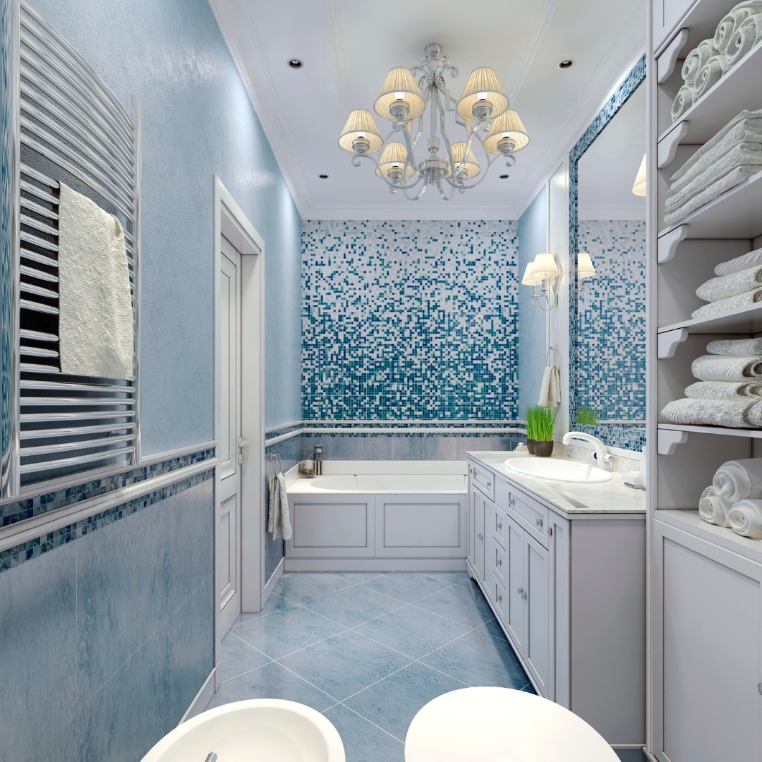 Łazienka w stylu greckim musi być jasna i przestronna. Jeśli pomieszczenie kąpielowe jest niewielkich rozmiarów, to warto zastosować błyszczące płytki, które powiększą optycznie wnętrze.