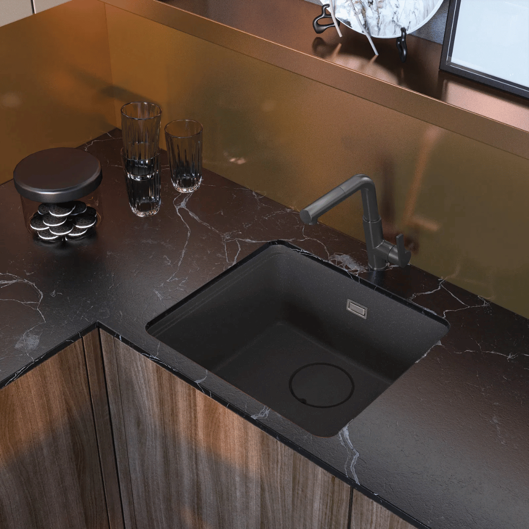 Jeżeli mielibyśmy wskazać typ zlewozmywaka, który jest teraz na topie, byłyby to zlewozmywaki granitowe. I trudno się dziwić. Te zlewozmywaki, popularnie określane mianem granitowych, prezentują się niezwykle efektownie na blacie kuchennym, dodając elegancji i stylu. A do tego oferują całkiem przyzwoite parametry materiału. Warto dodać, że to, co nazywamy zlewozmywakiem granitowym, w rzeczywistości nie jest w 100% granitem. W istocie jest to zlew wykonany z materiału kompozytowego, który łączy naturalne minerały, takie jak granit, kwarc lub krzemionka, z syntetycznymi żywicami. O jego parametrach decydują proporcje składu, między innymi zawartość kwarcu w kompozycie. Są bardzo trwałe, odporne na ciepło, zarysowania i uderzenia, i są dostępne w różnych kolorach. Mogą być droższe, ale oferują doskonałą trwałość.
