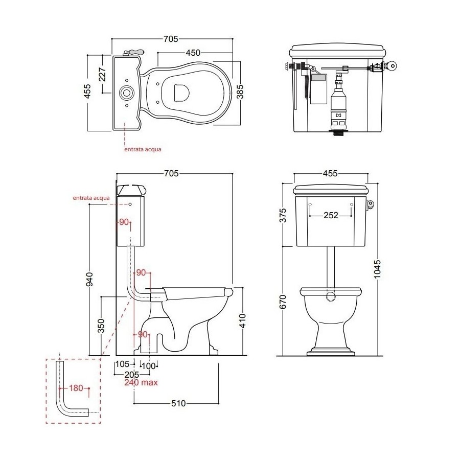 - rodzaj produktu : dolnopłuk do miski WC stojącej retro