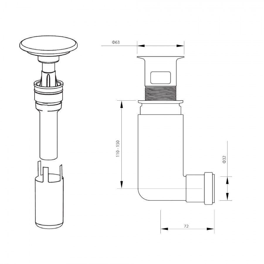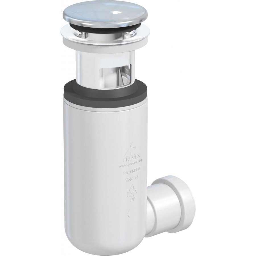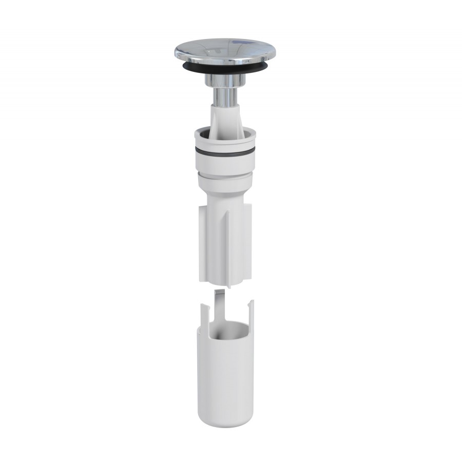 Połączenie korka click-clack z syfonem umywalkowym, z możliwością czyszczenia od góry bez potrzeby odkręcania zbiornika dolnego - wystarczy podnieść sitko, wypłukać i z powrotem założyć. Korek do umywalek z przelewem, zrobiony z PVC, z zakresem regulacji 120-170 mm.Deante Click-Clack korek czyszczony od góry z syfonem NHC 010C