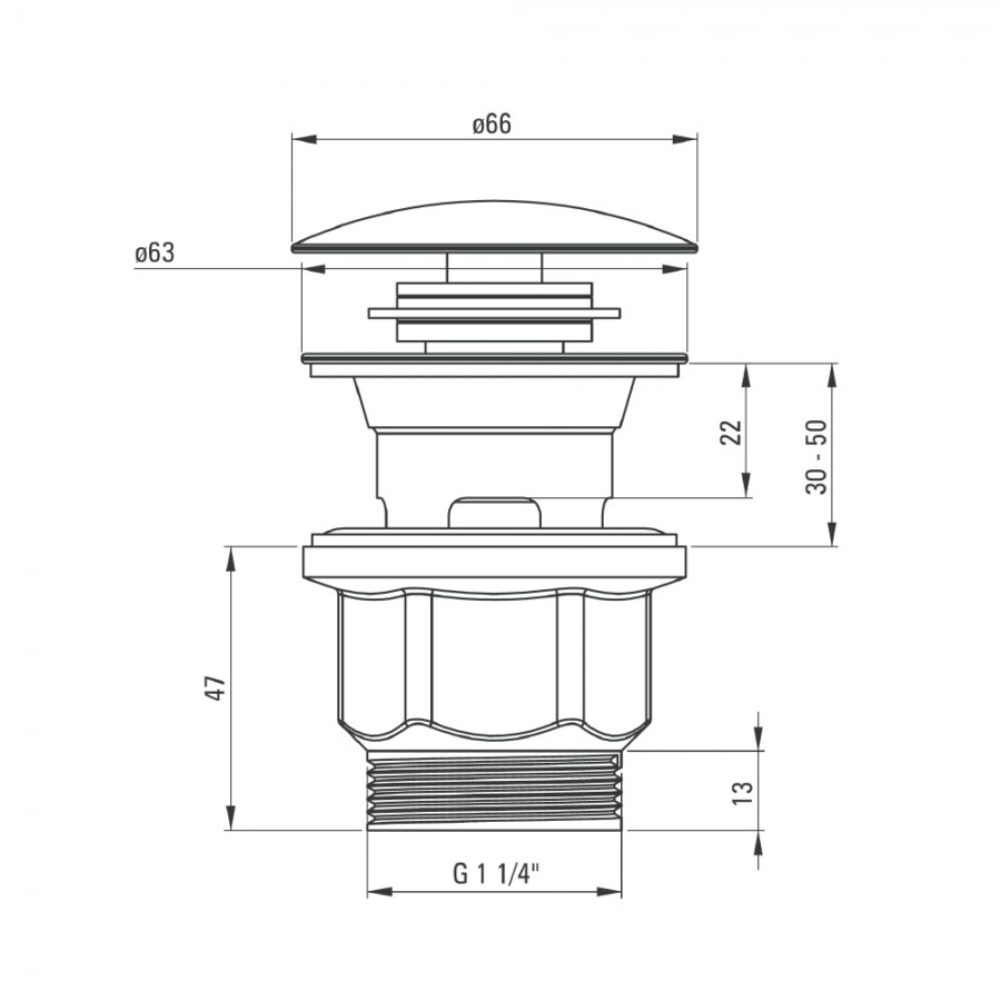 Korek click-clack z przelewem z silikonowymi uszczelkami.Deante Click-Clack korek okrągły z przelewem chrom NHC 010P