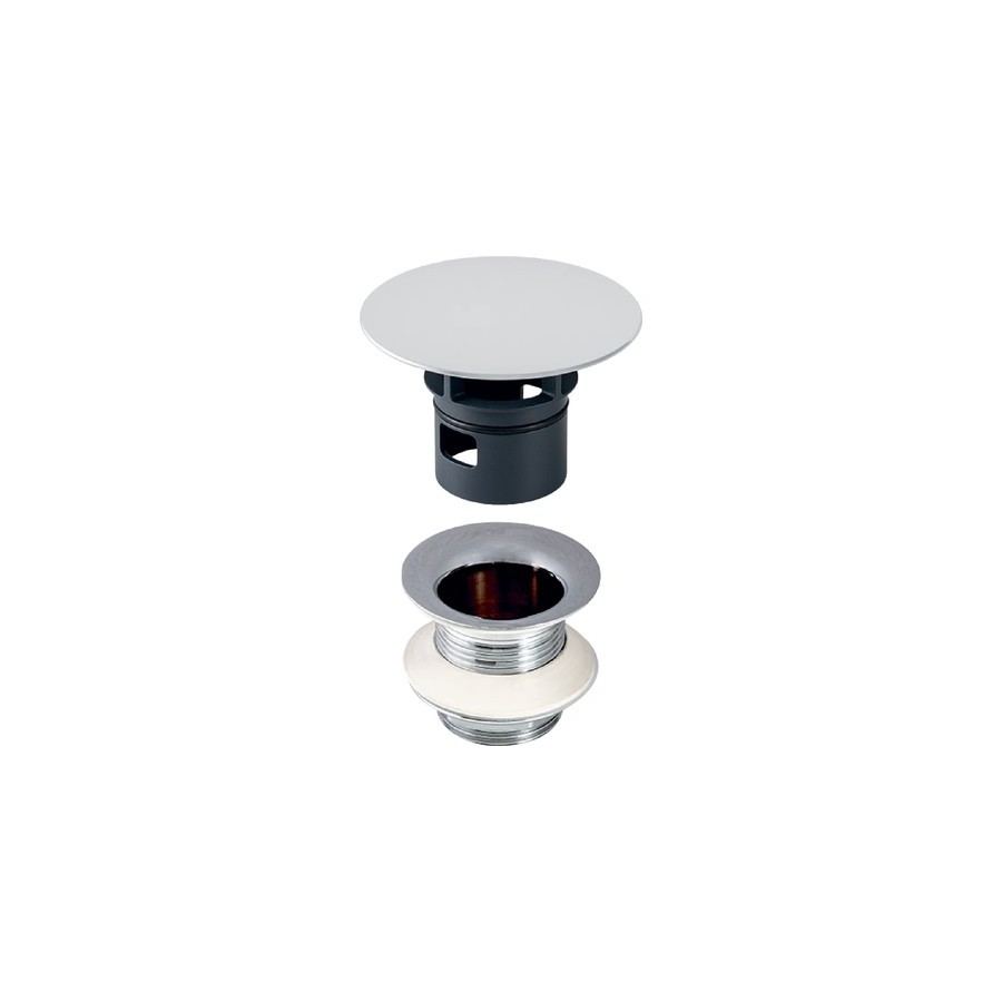 Odpływ do umywalek bez przelewu, z pokrywą z tworzywa sztucznego, chromowana.