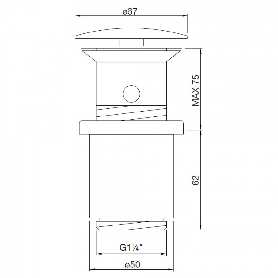 Okrągły korek klik klak do umywalek z przelewem. Korek z litego mosiądzu.Seria 100 wyróżnia się idealna kompozycją - smukły kontur, obłe elementy, ponadczasowy prostoliniowy wzór.