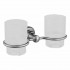 Podwójny kubek wiszący, wykonanie z mosiądzu oraz szkła satynowego.Sapho Diamond kubek szklany podwójny chrom 131705