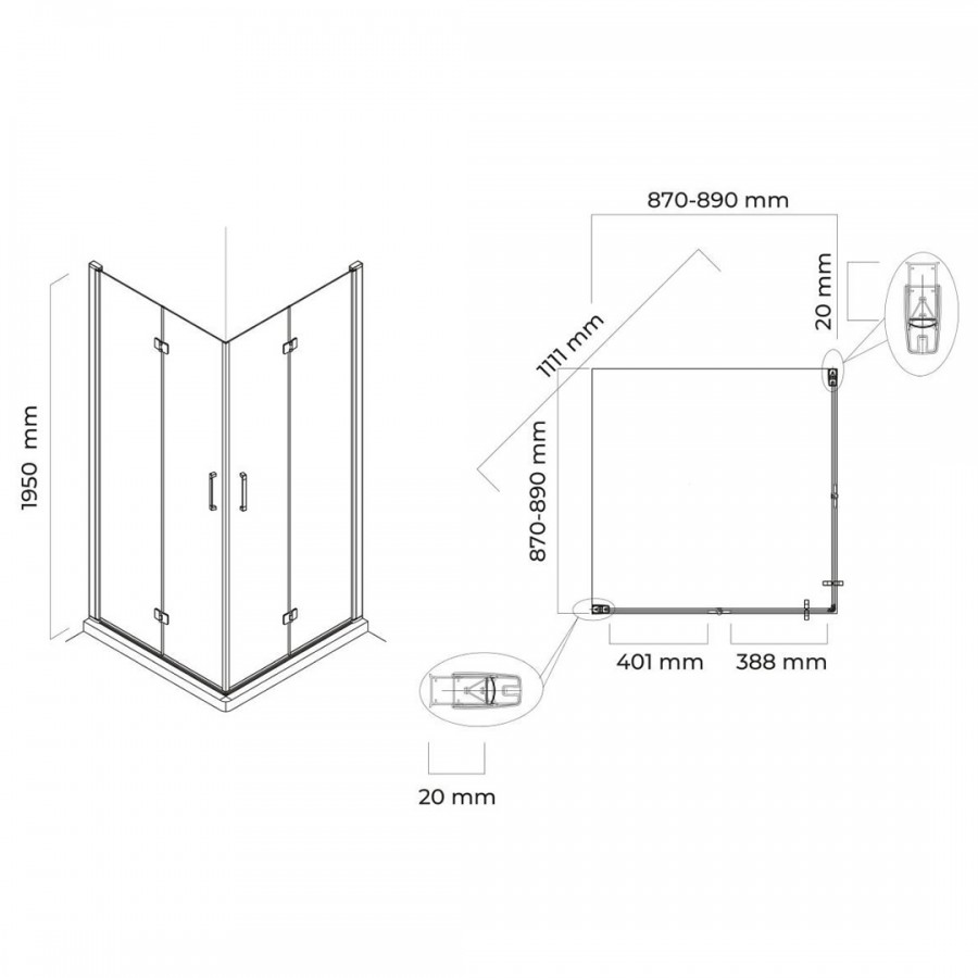 Opis produktu Oltens Byske kabina prysznicowa 90x90 cm kwadratowa 20002100