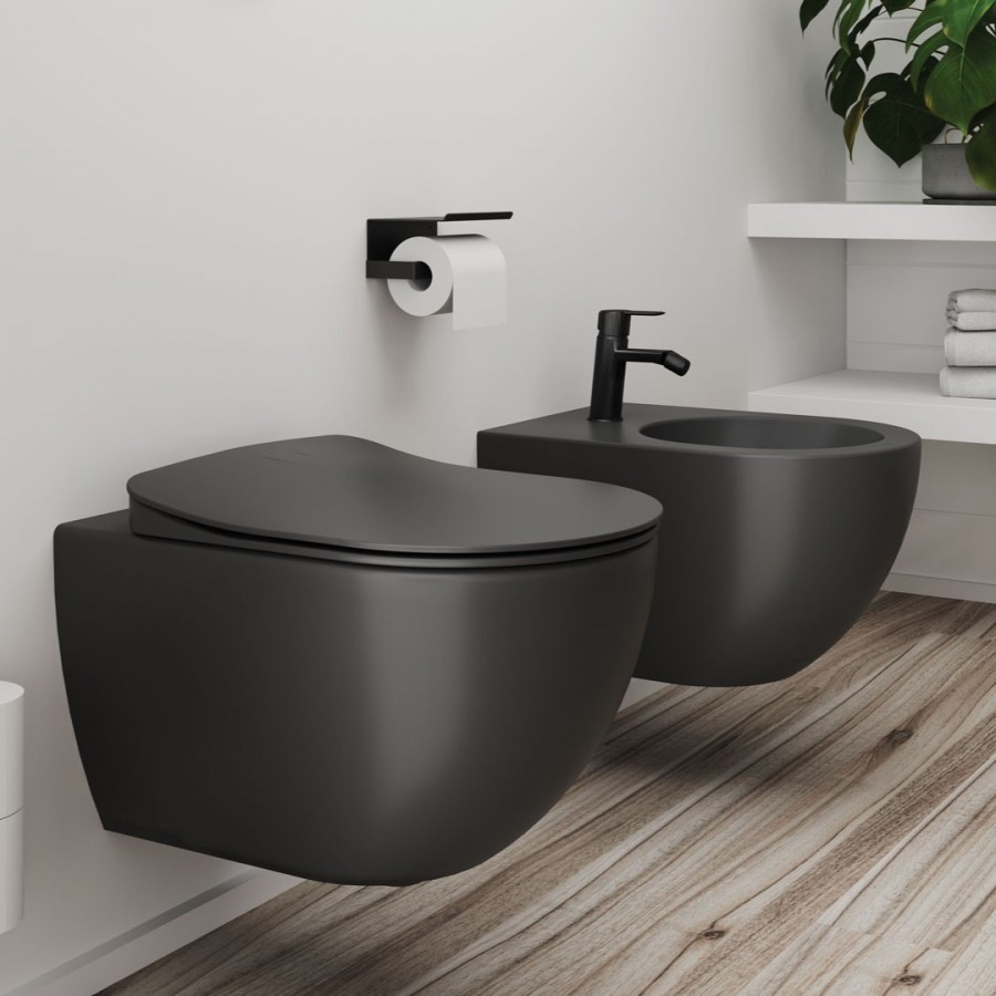Opis produktu Deante Peonia miska WC wisząca bezkołnierzowa z deską wolnoopadającą antracyt/titanium CDEDDZPW