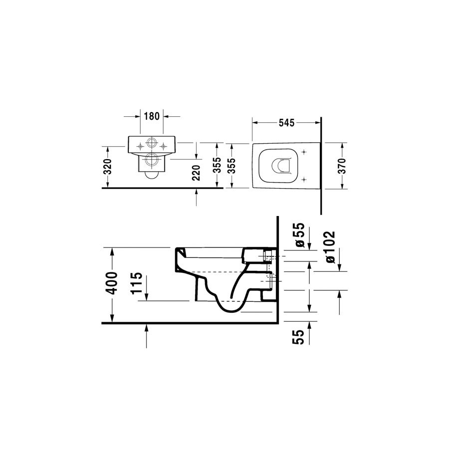 Wisząca miska WC lejowa 54,5x37 cm. Przy montażu bez stelażu podtynkowego zalecane jest mocowanie 006500. Do kompletowania z deską WC.
