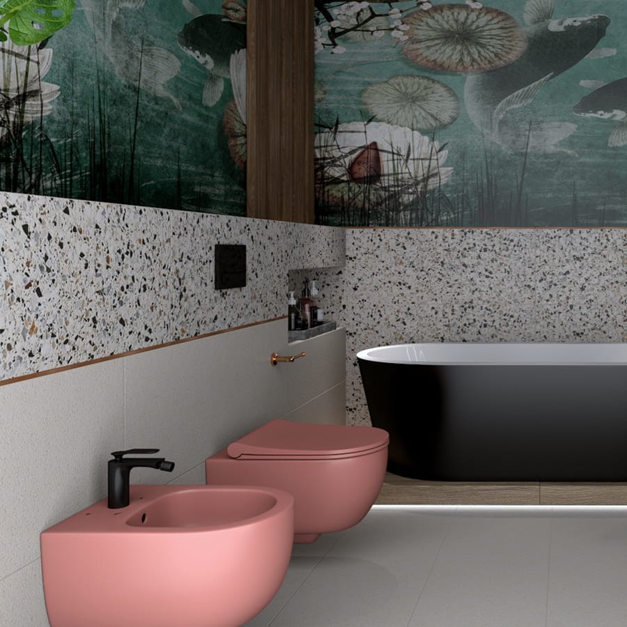 Opis produktu Massi Molis miska WC wisząca Rimless z deską wolnoopadającą Slim różowy półmat MSM-0013RIMSLIM-MS