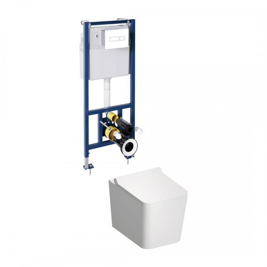 W zestawie znajduje się wisząca miska toaletowa OMNIRES BOSTON z deską wolnoopadającą oraz stelaż podtynkowy OMNIRES CLASSIC z białym przyciskiem spłukującym.Miska z deską toaletową OMNIRES BOSTON