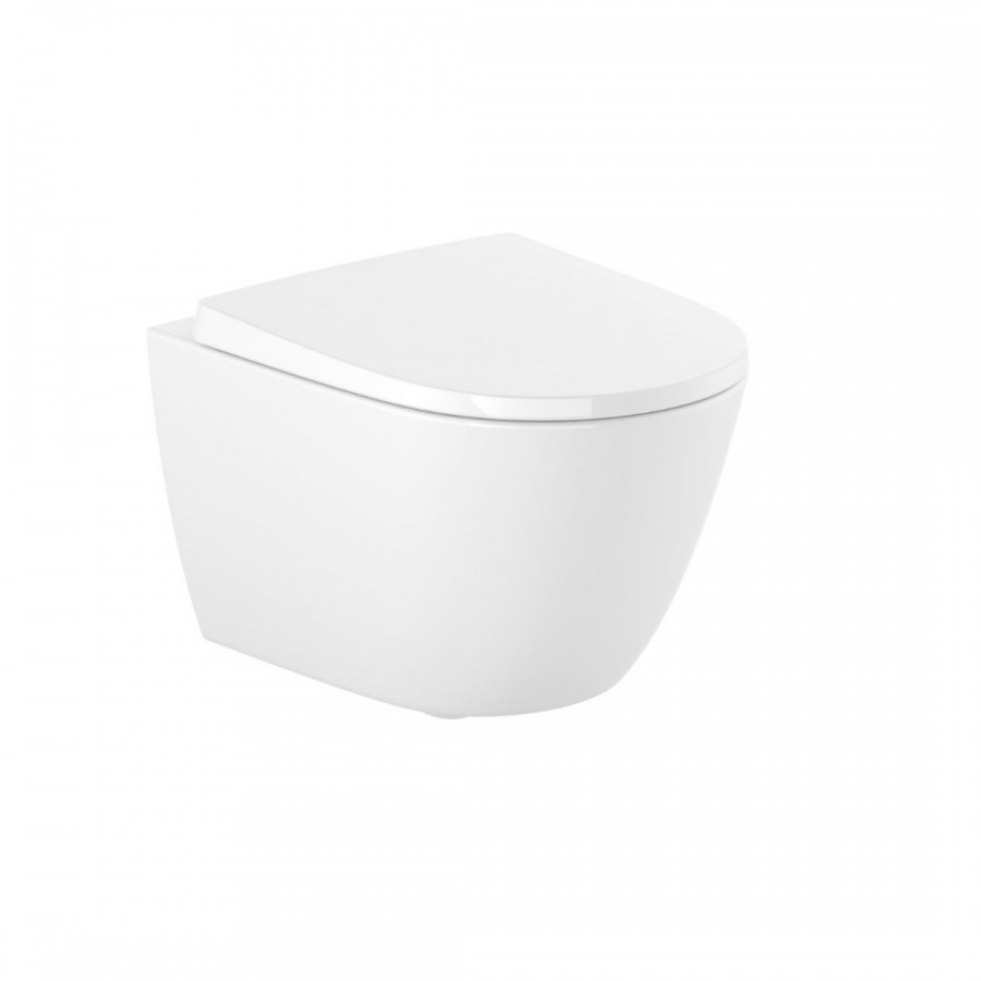 Opis produktu Roca Ona Compacto miska WC wisząca Rimless z deską WC wolnoopadającą biała A34H689000