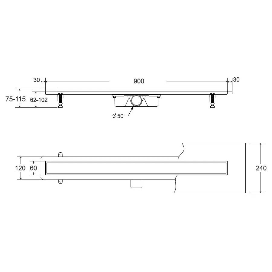 Odpływ liniowy składa się z rynienki z syfonem, nóżek montażowych, rusztu oraz maty uszczelniającej. Rynienka Slim o szerokości 6 cm, niska wysokość zabudowy - 62 mm od kołnierza, przyłącze Ø 50 mm oraz przepustowość syfonu do 56 l/min, syfon czyszczony od góry. Ruszt odpływu wykończony białym szkłem hartowanym.Besco Virgo White odpływ liniowy 90 cm OL-90-VW