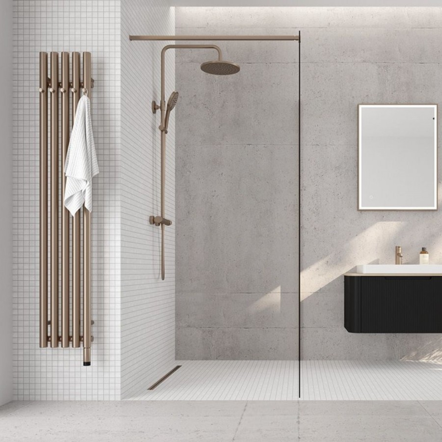 - dwustronna maskownica o szerokości zaledwie 30 mm – wybierz stronę w wykończeniu miedź połysk lub miedź szczotkowana, aby dopasować odpływ do stylu swojej łazienki