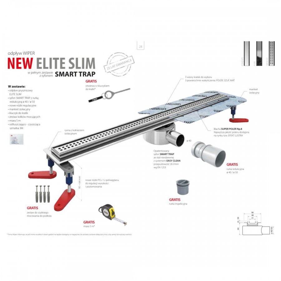 Odpływ liniowy dł. 120 cm z serii New Elite Slim.Do wybory 3 rodzaje wykończenia: