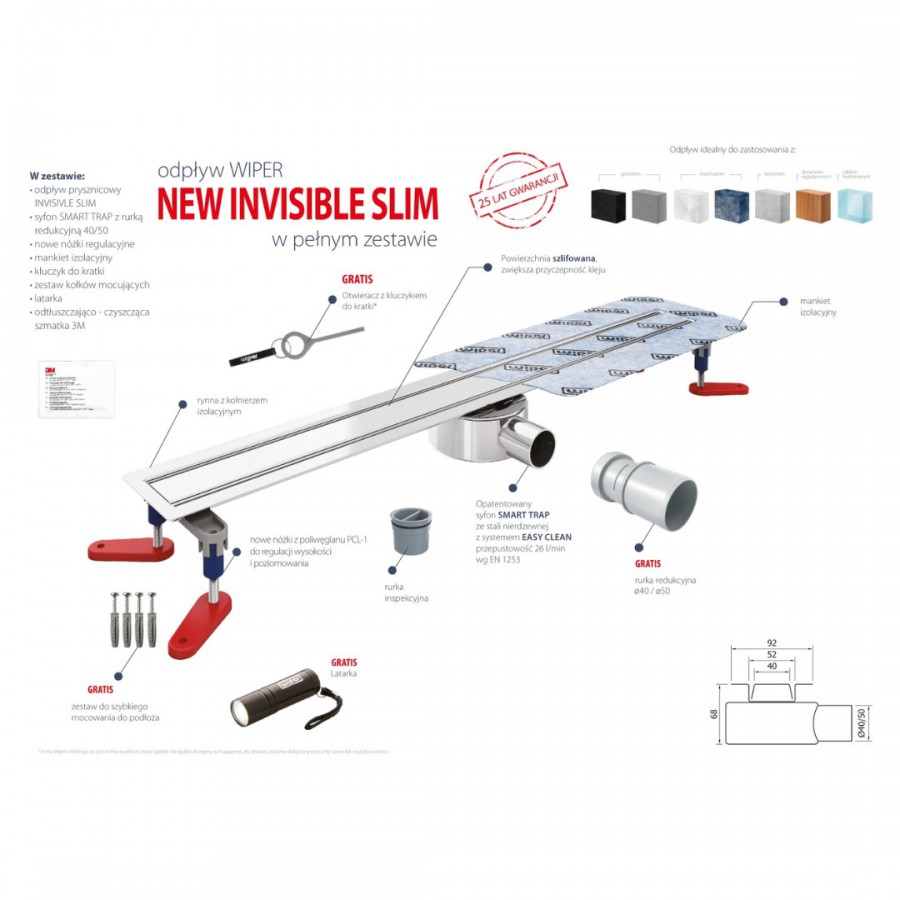 Opis produktu Wiper New Invisible Slim odpływ liniowy 50 cm 100.3390.00.050