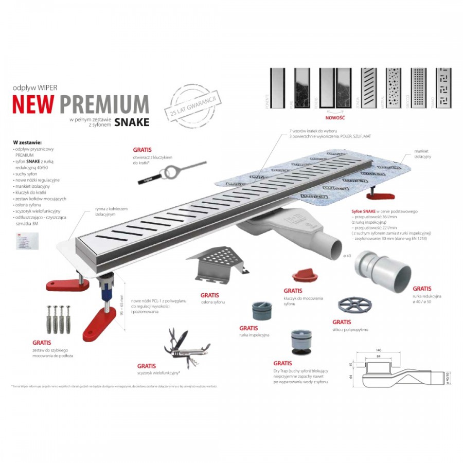 Opis produktu Wiper New Premium ZONDA odpływ liniowy 120 cm 100.1969.01.120
