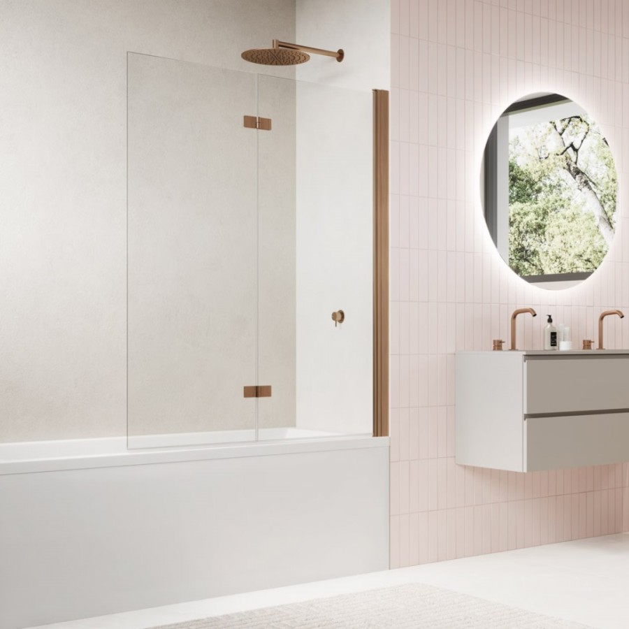 Opis produktu Sanswiss Solino parawan nawannowy 2-częściowy 110x150 cm prawy miedź szczotkowana SOLB2D1102707